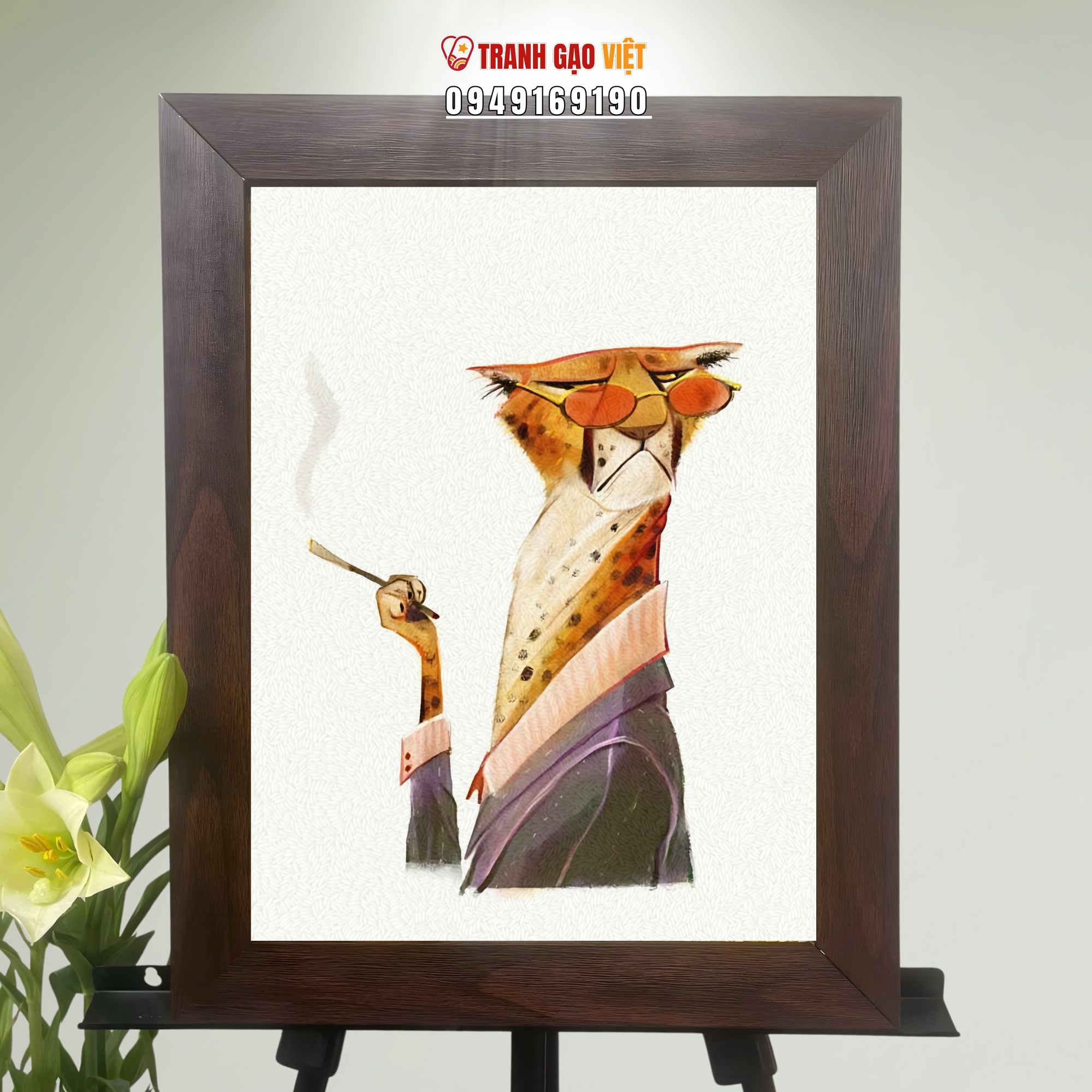 Tranh Gạo Quý Ông Báo Đốm - Tranh Nghệ Thuật - Tranh Tặng Quà - Tranh Thủ Công