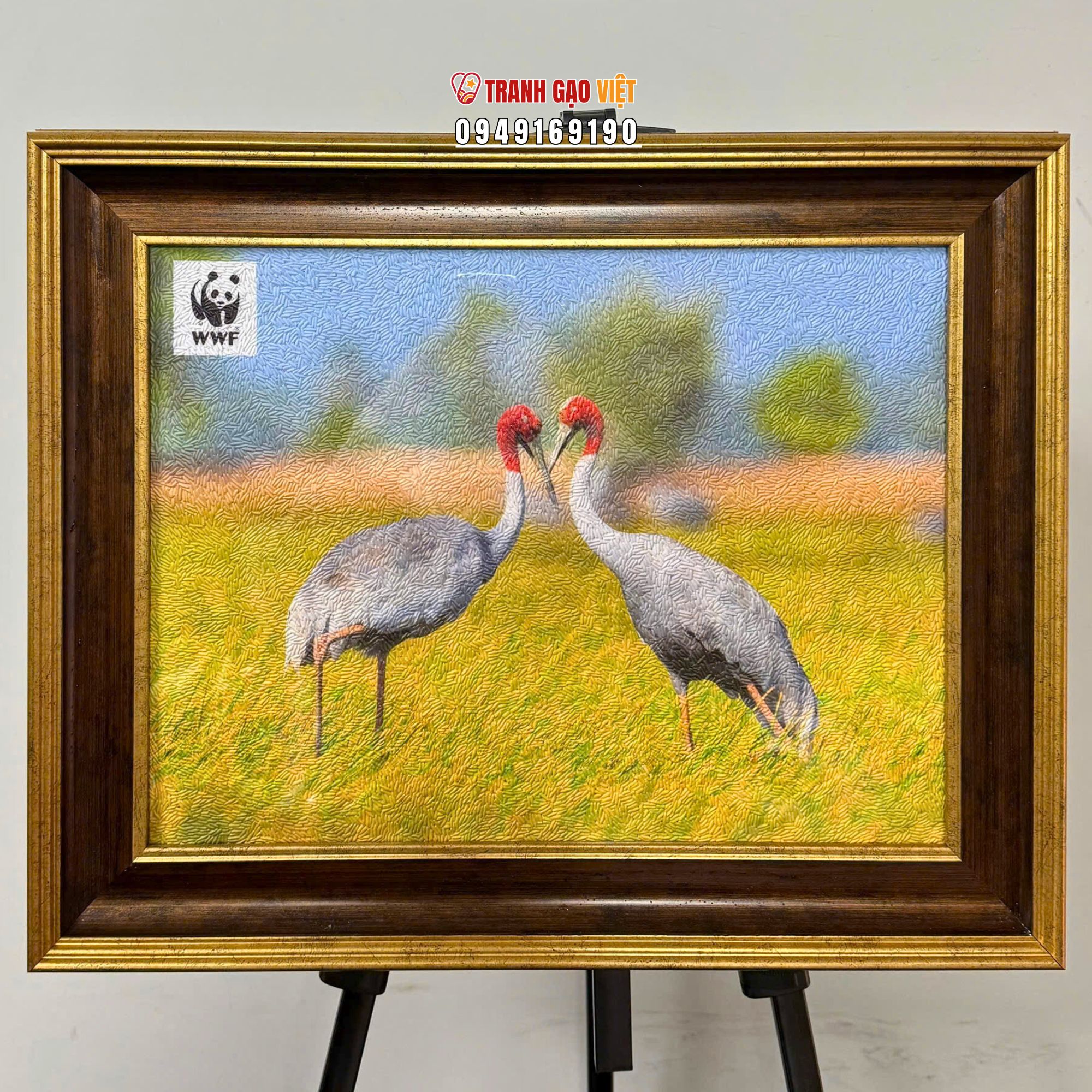 Tranh Gạo Sếu Đầu Đỏ Bản Ngang là bức tranh theo yêu cầu của Tổ Chức WWF để cảm ơn sự đóng góp hết mình trong sự cống hiến bền bỉ từ công cuộc bảo vệ