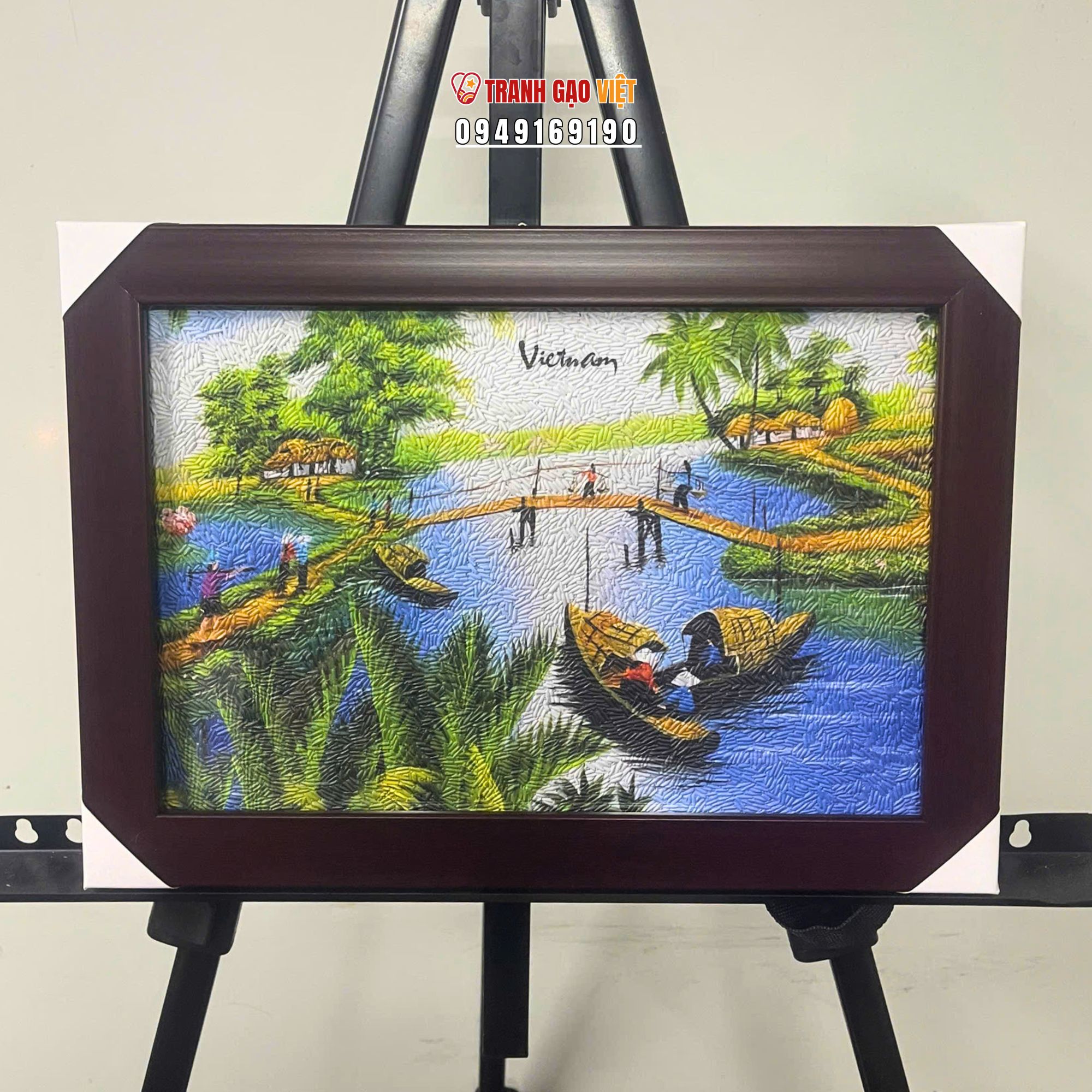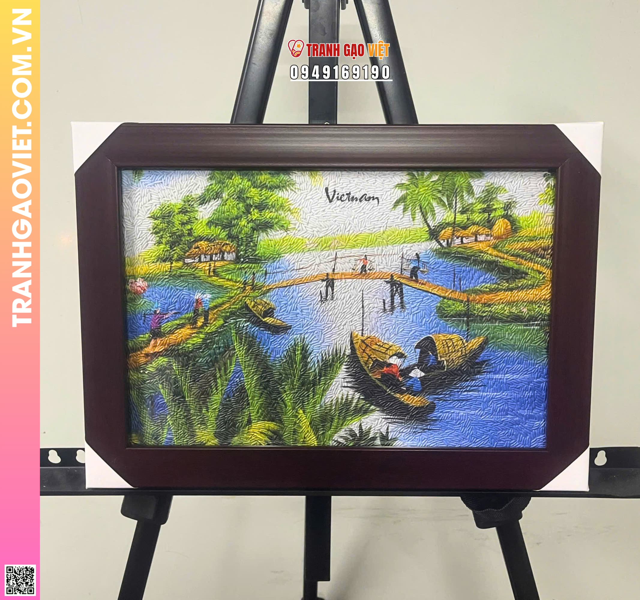 Hình ảnh Tranh Gạo Sông Quê Mùa Lúa Chín - Ảnh thực tế sản phẩm Tranh Gạo