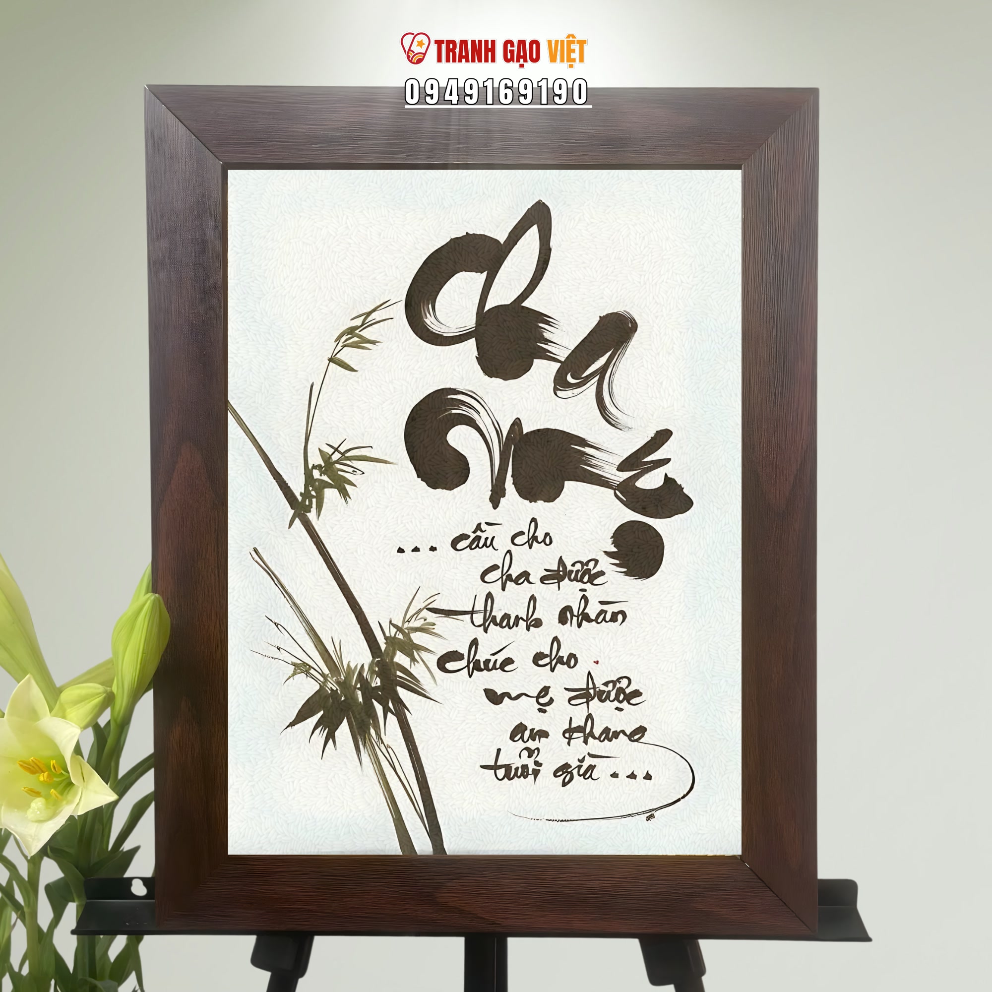 Tranh Gạo Thơ Chữ Cha Mẹ - Tranh Nghệ Thuật - Tranh Tặng Quà - Tranh Thủ Công