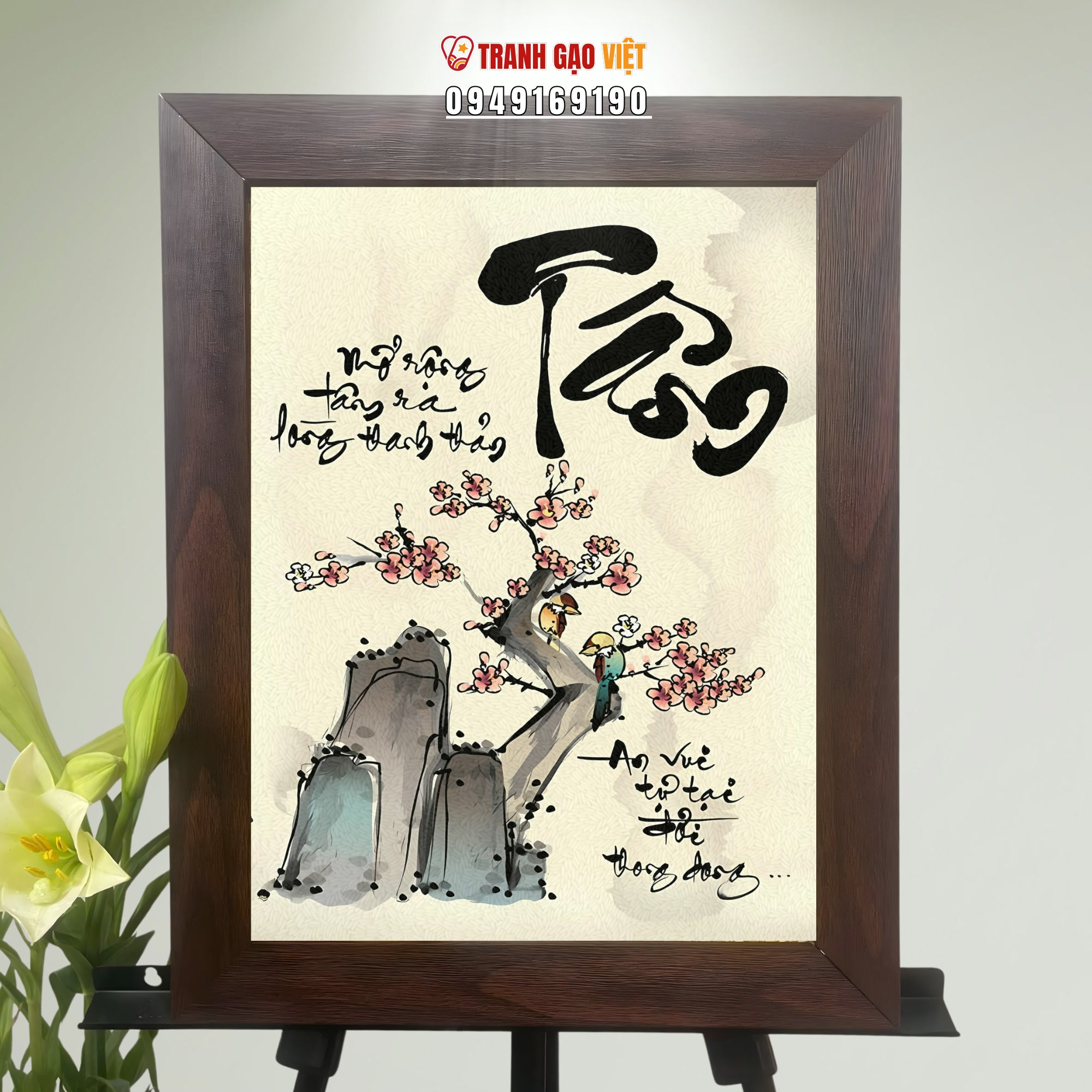 Tranh Gạo Thư Pháp Chữ Tâm An Vui - Tranh Nghệ Thuật - Tranh Tặng Quà - Tranh Thủ Công