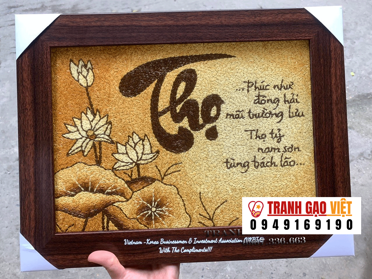 Tranh gạo chữ "Thọ" không chỉ là một biểu tượng trang trí mà còn là nguồn cảm hứng về sức khỏe, trường thọ và hạnh phúc trong cuộc sống hàng ngày. Tranh thích hợp treo trang trí nhà cửa hoặc làm quà tặng dịp mừng thọ, quà tặng ông bà quà tặng...