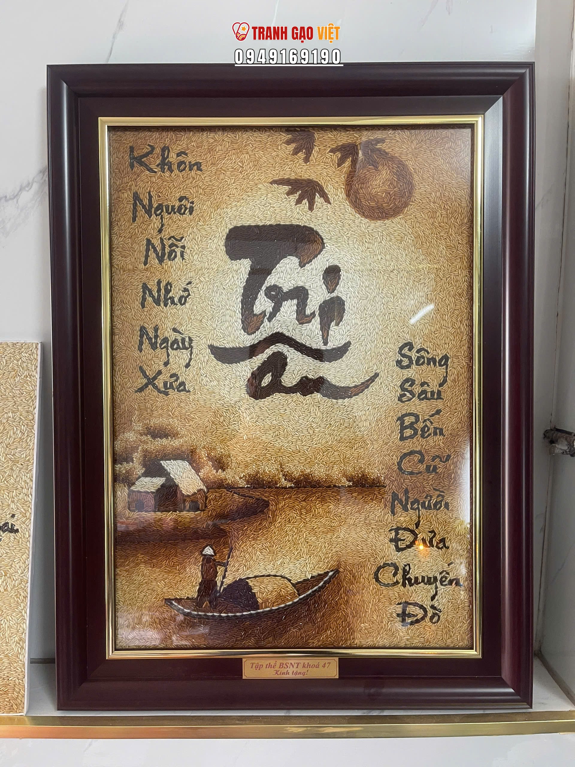 Tranh gạo Tri Ân người lái đò đã lái con đò, đưa người tới bến bờ tri thức.