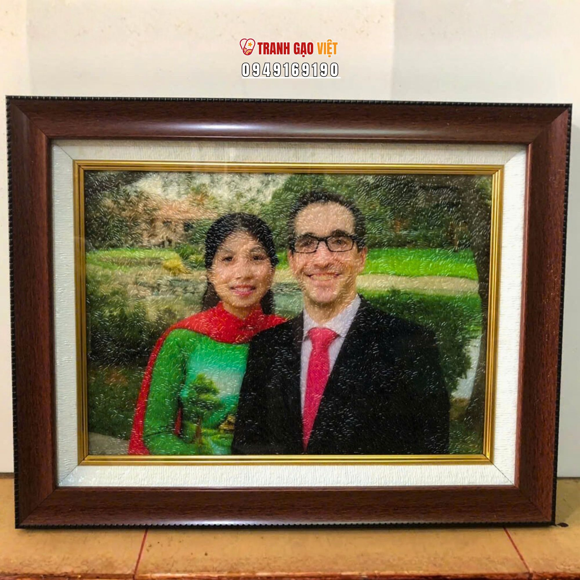 Tranh Gạo Vợ Chồng Ngươi Nước Ngoài là sản phẩm tranh thủ công của nghệ nhân Việt